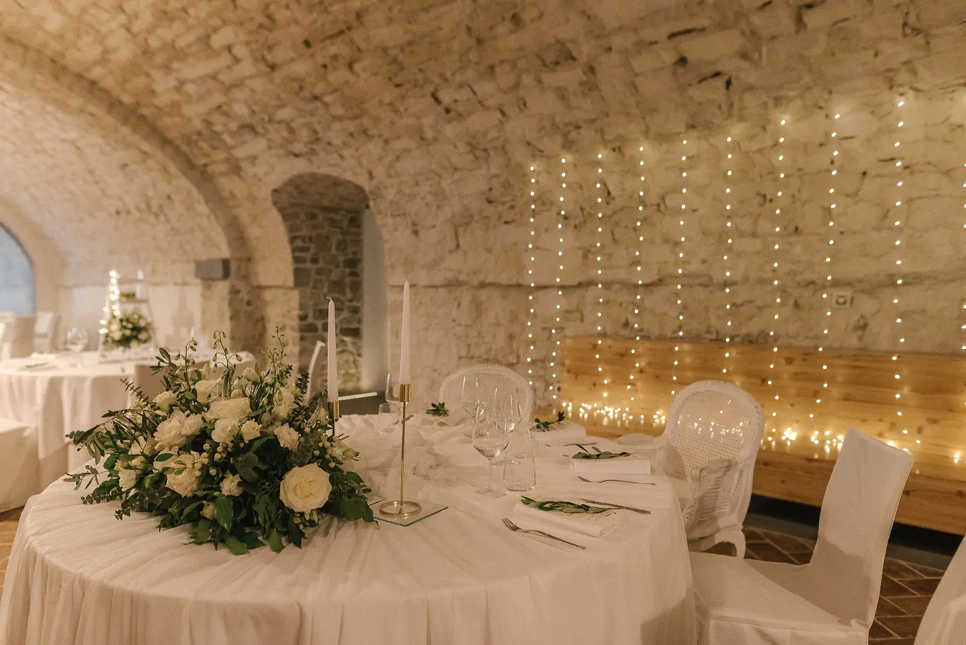Ta izjemna lokacija lahko na enem mestu ponudi vse. Poročni obred lahko poteka v čudovitem parku ali v notranjosti vile. Po zaključenem obredu se dogajanje preseli v očarljivo romantično renesančno obokano klet z visokimi stropi, kjer lahko svatje sproščeno zaplešejo. Najlepši večer pa se zaključi z nočitvijo v enem od najsodobneje opremljenih apartmajev v zgornjem nadstropju vile, kamor lahko ženin nevesto popelje po veličastnem stopnišču.
